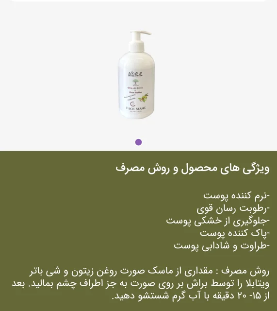 آیا بعد از یک روز طولانی احساس میکنید پوستتان کدر شده یا بر اثر سرما و آلودگی، دچار خشکی و کشیدگی شده است؟ **ماسک صورت روغن زیتون و شیباتر ویتابلا**، دقیقاً همان چیزی است که پوستهای تشنه و خسته به آن نیاز دارند. این ماسک مثل یک مخمل نرم روی صورت شما مینشیند و تمام مواد مغذی را به اعماق منافذ میفرستد.